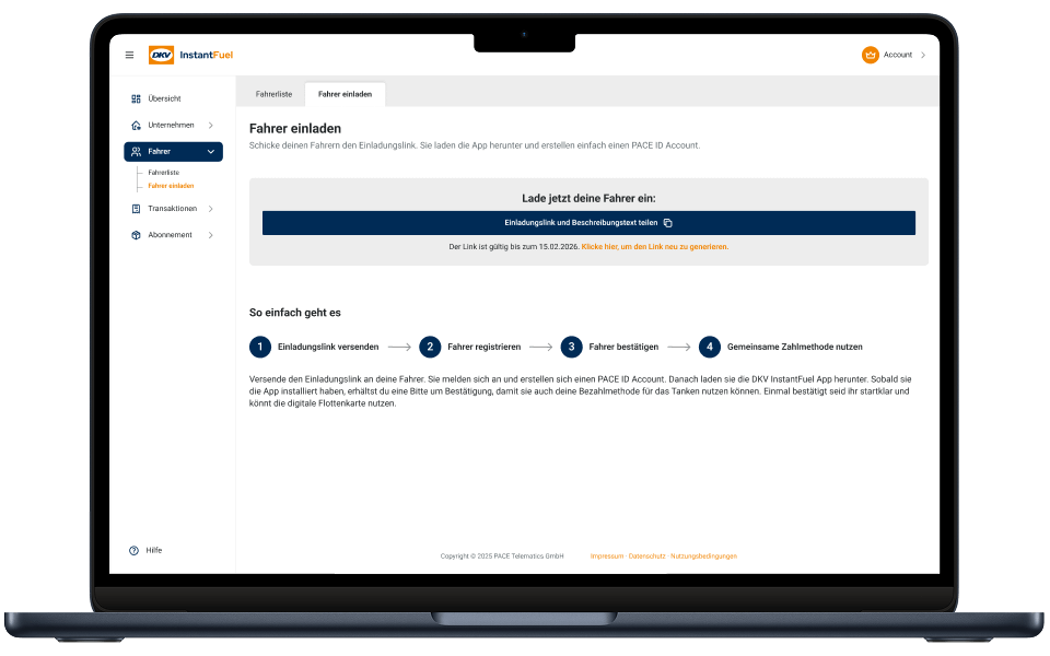 Gut zu wissen: DKV InstantFuel basiert auf der Technologie und dem Akzeptanznetz der PACE Mobility GmbH. Das bedeutet für Sie: Über dieses Produkt greifen Sie gezielt auf die Tankstellen des PACE-Netzwerk zu. Andere DKV-Leistungen oder Tankstellen außerhalb dieses Netzes sind kein Bestandteil des InstantFuel-Vertrags, es sei denn.